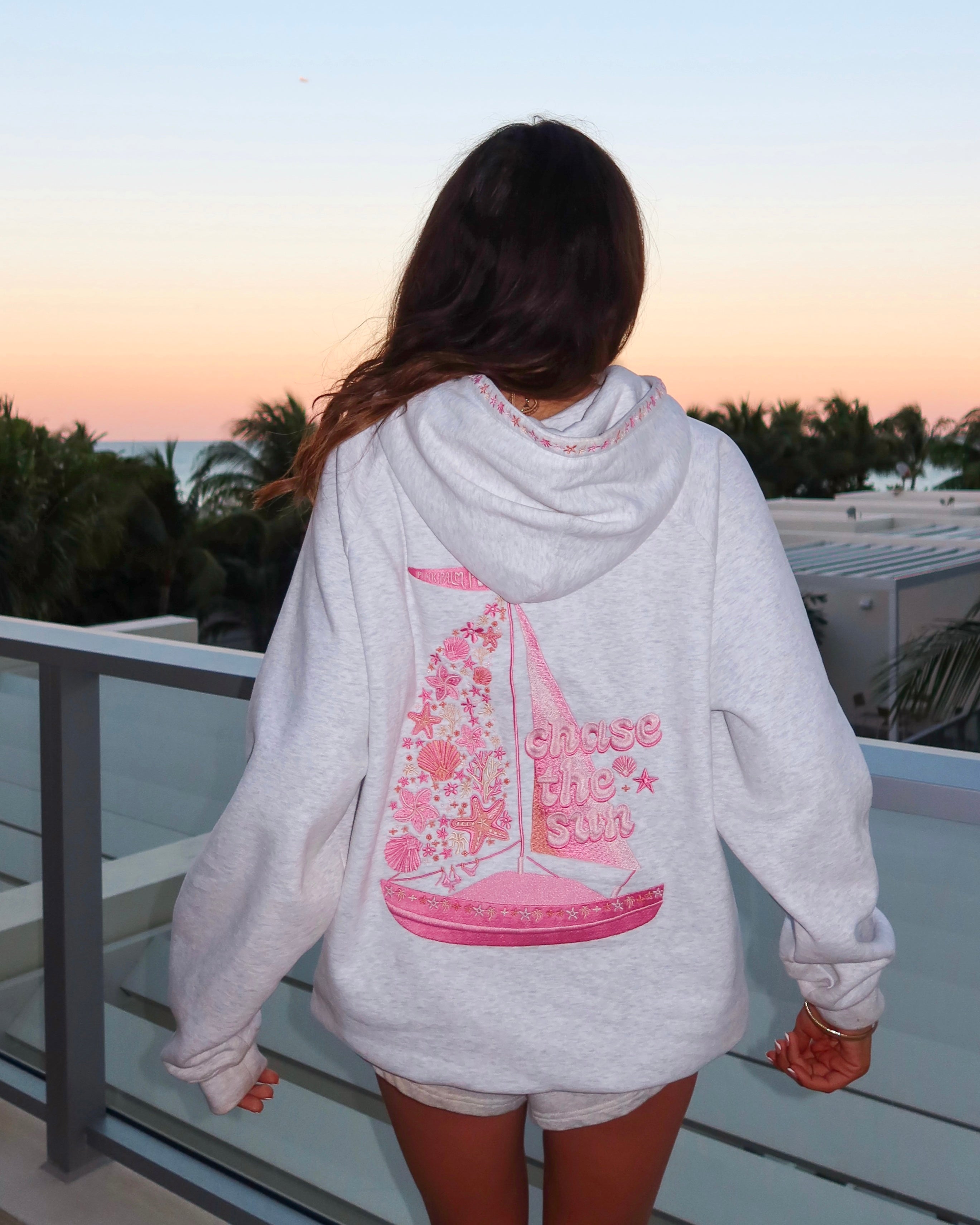 “Chase the Sun” Relaxed Hoodie in Heather Cloud