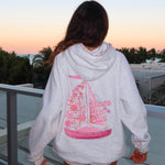 Set sail in comfort! With relaxed sleeves, this hoodie wraps you in warmth for every journey ahead. Finished with intricate beading details that catch the light; Chase the Sun is inspired by the glow just before dusk, the quiet moments between waves and light finding its way back.