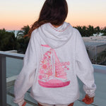 Set sail in comfort! With relaxed sleeves, this hoodie wraps you in warmth for every journey ahead. Finished with intricate beading details that catch the light; Chase the Sun is inspired by the glow just before dusk, the quiet moments between waves and light finding its way back.