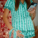 Pink Palm Pajamas in Evergreen + Holiday Bow Set
