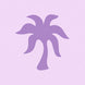 Person holding a pair of purple Malibu slippers by Pink Palm Puff with palm tree design on a blurred background